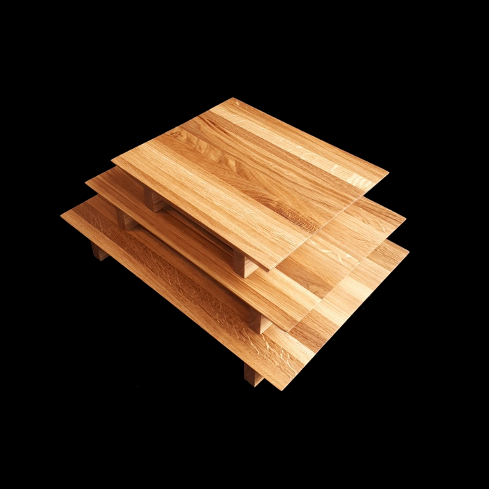 Набор разделочных досок "Пагода", массив дуба, покрытие карнаубский воск + минеральное масло, на деревянных ножках Разделочные доски "Пагода" так же хорошо подходят для сервировки и подачи сыра, закусок и т.п. Этот набор будет прекрасный подарок на любой праздник.
