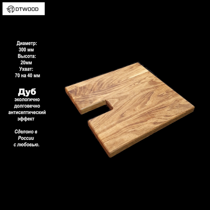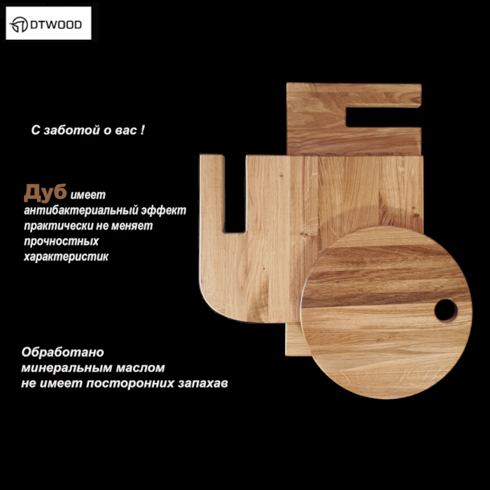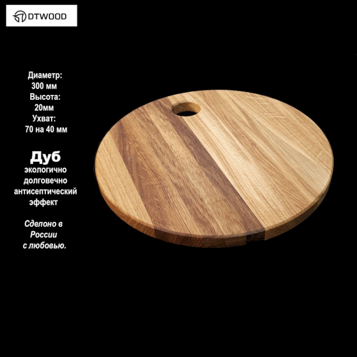 Доска 1 шт. Диаметр 300 мм Можно собрать набор. Разделочная доска походит для подачи блюд и декора. Материал дуб. Обработана минеральным маслом + карнаубским воском, не имеет посторонних запахов. Практически не теряет прочностных характеристик.