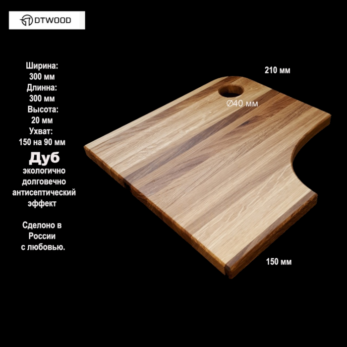 Доска 1 шт. Фигурная 300*300*20 мм Можно собрать набор. Разделочная доска походит для подачи блюд и декора. Материал дуб. Обработана минеральным маслом + карнаубским воском, не имеет посторонних запахов. Практически не теряет прочностных характеристик.