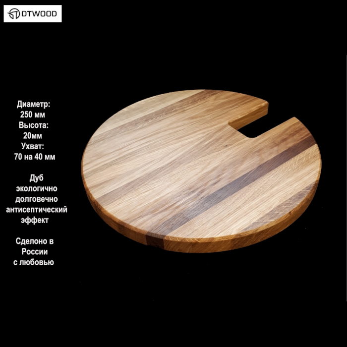 Доска круглая 1 шт. диаметр 250 мм Можно собрать набор. Разделочная доска походит для подачи блюд и декора. Материал дуб. Обработана минеральным маслом + карнаубским воском, не имеет посторонних запахов. Практически не теряет прочностных характеристик.