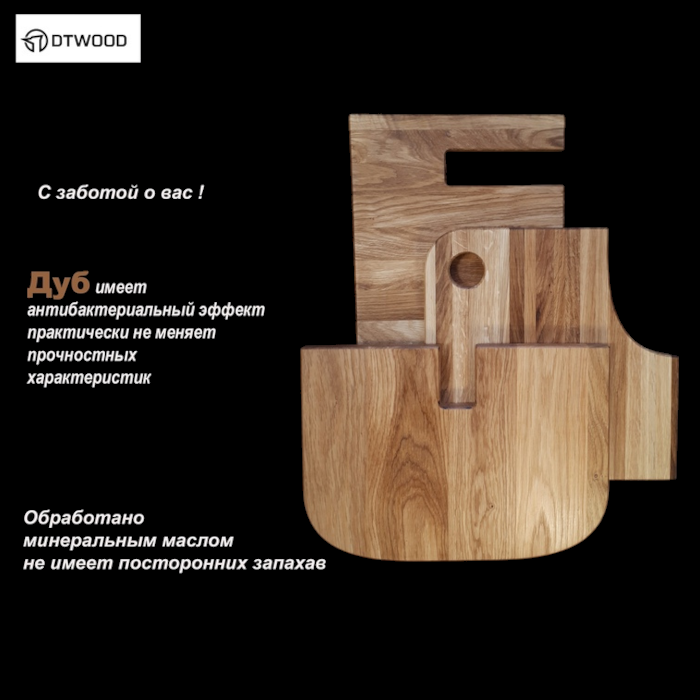 Доска 1 шт. Фигурная 350*250*20 Можно собрать набор. Разделочная доска походит для подачи блюд и декора. Материал дуб. Обработана минеральным маслом + карнаубским воском, не имеет посторонних запахов. Практически не теряет прочностных характеристик.